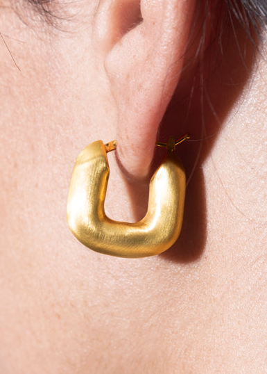 the magda huggies are the perfect hoops. rectangular, bubbly and brushed, they came to conquer your heart as they did ours!